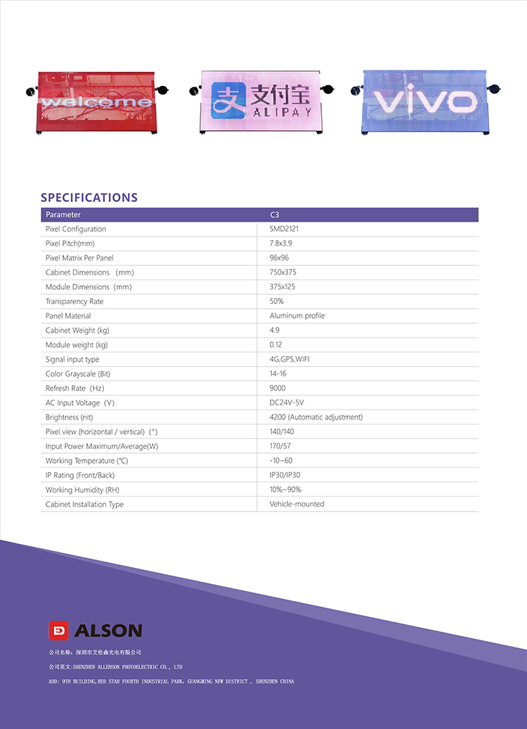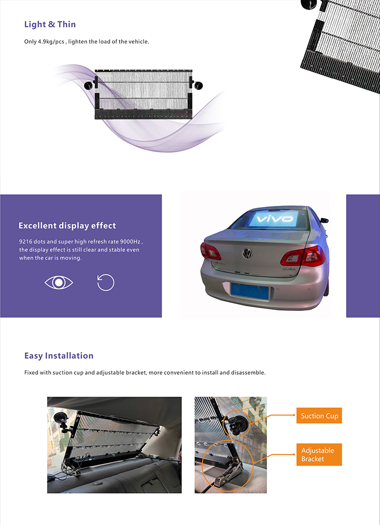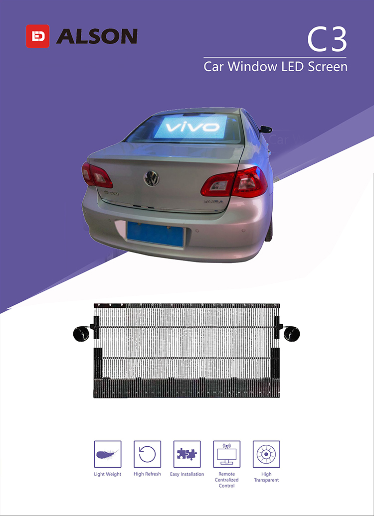 車後窗顯示屏 ,室(shì)內P7.8-3.9車後窗顯示屏